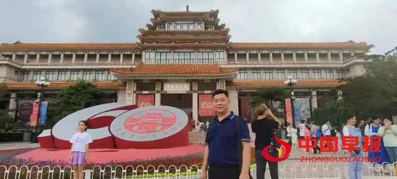 中国美术馆——无数艺术家向往的地方。高大的中式古典建筑,雄伟壮观。正门前方摆放着大型立体花坛,中间树立硕大的60立体展标,下方刻有1963——2023字样,在鲜花的簇拥中熠熠生辉。我站在旁边留影,记录下了这具有历史性一刻。
