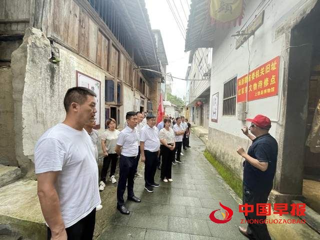 这是2023年7月29日抚州商会部分会员来到上饶市广信区望仙乡沙洲红军街旧址,开展红色主题教育活动。