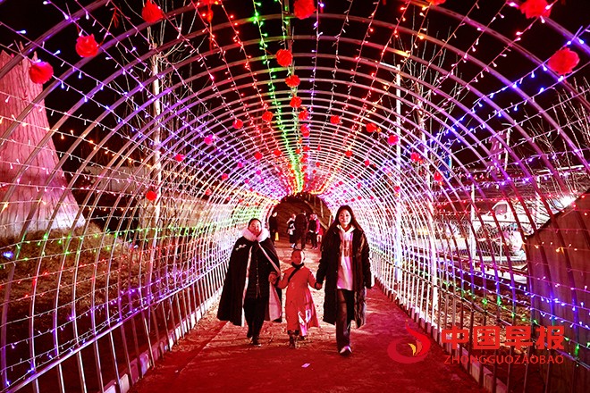 中国早报 河南讯(记者 赵玉虎 特约记者 李新义)1月30日,河南省开封市尉氏县先进制造业开发区枣朱村的燕园生态园宛如白昼,处处张灯结彩,灯光与夜色交织,处处洋溢着浓郁的年味,让人流连忘返。
