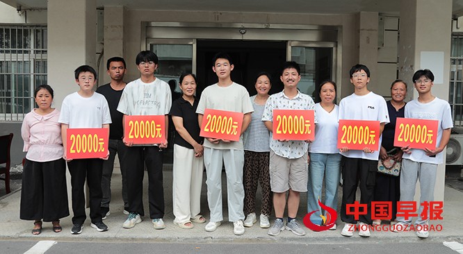 中国早报 河南讯(特约记者 李新义)8月14日上午,尉氏县爱心企业把2万元送到考入北京大学寒门学子孙岚木手中。当日由尉氏县妇女联合会、尉氏县人大常委会组织的多家爱心企业联合发起助学行动,向6名优秀学子捐赠12万元助学金,助力他们顺利完成学业,追逐梦想。