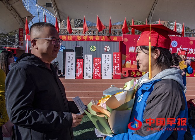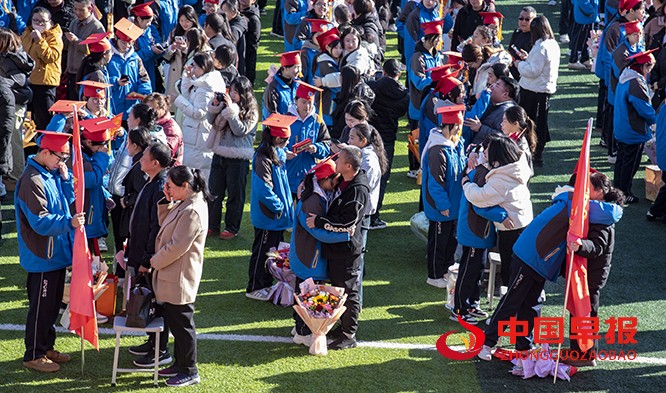 仪式现场温情与激昂交织。学子们在家长的陪伴下缓缓迈过“成人门”,标志着从青涩少年向责任公民的蜕变。父母亲手为孩子佩戴冠徽,两两相对诵读家书,字里行间满含期许与牵挂,温情瞬间浸润全场。拜师礼环节,学子们向师长行感恩之礼,师生互敬互勉,传承尊师重道的优良传统。随后,千余名学子高举右拳庄严宣誓,铮铮誓言响彻校园;他们将理想大学的名字郑重书写在班级条幅上,以青春之名立下冲刺高考的坚定誓言,正式吹响 200 天倒计时的奋进号角。