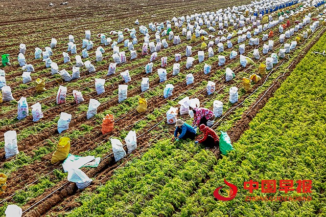 中国早报 河南讯(特约记者 李新义)12月7日,冬日暖阳洒满田间,河南省开封市尉氏县张市镇张市村特色种植合作社的员工们正忙碌在红萝卜种植园里。大家分工协作、抢抓农时,采收、分拣、打包一气呵成,新鲜的红萝卜将源源不断发往外地市场。