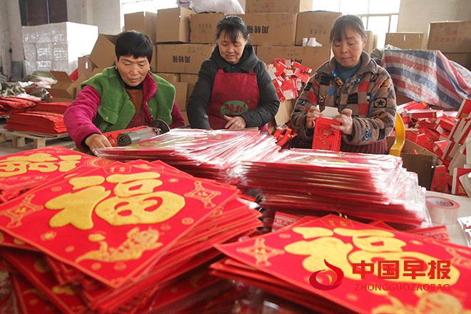 新年临近,眼下正是春节对联、“福”字等喜气用品的产销高峰期,尉氏县大桥乡大槐树壮丽工艺品作坊喜庆用品生产车间各条流水线开足马力,加班加点满负荷生产,把产品供应到国内外市场。