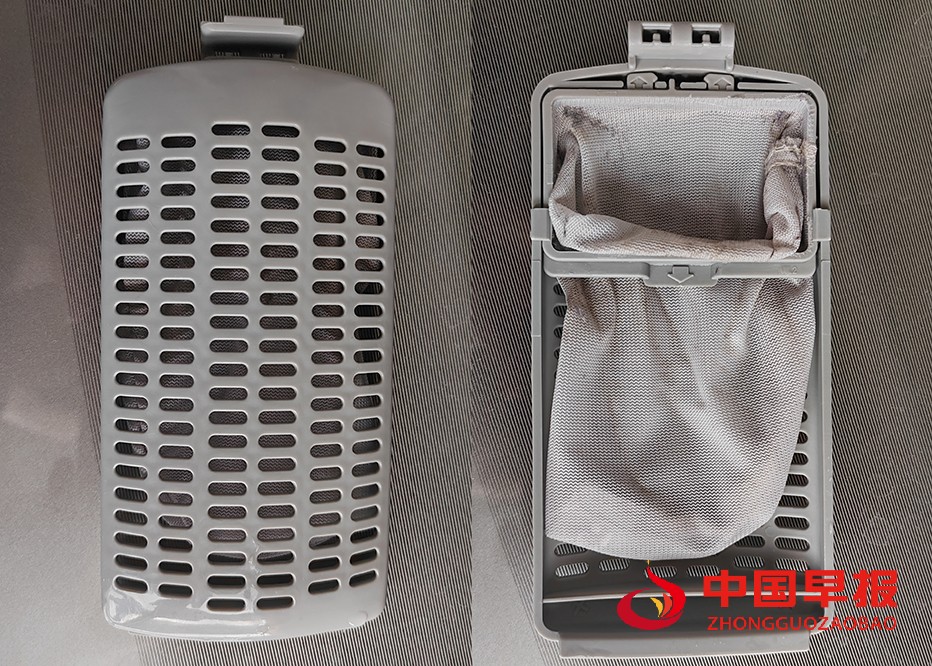 现在将纱布盒换成布袋,袋口设计弊病不合理直接导致了功能失效。衣物在洗涤旋转时,大量杂物根本无法被回收袋拦截,洗完的衣服上沾满了白色絮状垃圾。这些细小的纤维附着力强,需要逐一反复清理也无法全部清除,导致人体皮肤瘙痒。给用户增加了额外家务负担。这一从 “解决问题” 到 “制造问题” 的变化,让用户难以接受。