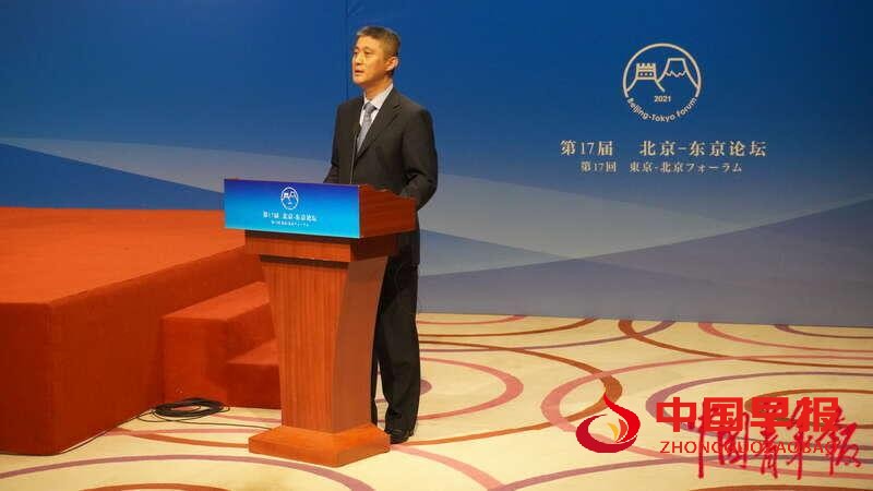 10月26日,第十七届“北京-东京论坛”闭幕式,中国外文局副局长兼总编辑高岸明宣读《北京共识》。中青报·中青网记者 马子倩/摄
