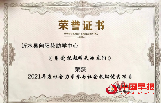 近年来,沂水县向阳花助学中心通过努力,募集助学资金360余万元,物资价值480多万元,开展各种助学活动530余次,资助了全县小学、初中、高中困境学生2300多名。目前为止,被沂水县向阳花助学中心资助帮扶的高中生有162名考入理想大学,其中张峻豪同学2022年以高分被北京大学录取。以后每年都会有20多名受向阳花助学中心资助的高中生考入大学。