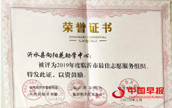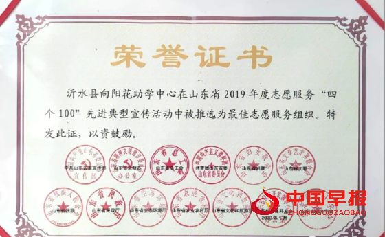 沂水县向阳花助学中心广大志愿者先后获得“慈善之星”、"爱心标兵”、"最美志愿者"、"沂蒙形象大使"、"助学工作先进个人"等众多荣誉称号。沂水县向阳花助学中心被中共临沂市委宣传部、临沂市文明办、临沂市民政局、共青团临沂市委、临沂市志愿者协会评为临沂市“最佳志愿服务组织”、被中共山东省委宣传部、省文明办、共青团山东省委等十三个部门评为“山东省最佳志愿服务组织”。2020年,被临沂市希望工程办公室评为临沂市“希望工程30年捐资助学突出贡献集体”。2021年被临沂市慈善总会评为临沂市“慈善助学先进单位”,“用爱托起明天的太阳—贫困家庭学生助学项目”被山东省民政厅评为“全省社会力量参与社会救助优秀项目”