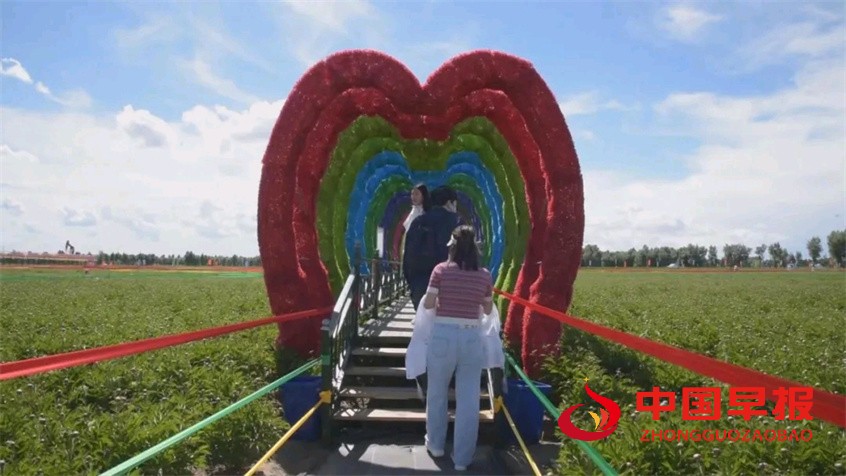 今年,八井子乡投资100万元,对芍药花进行提档升级,建设芍药花第一枝,网红秋千树,花仙子等主题景观20个,安装公主香车、小红军等微景观27处。八井子乡党委副书记 周天伟:每年芍药花海确实漂亮,但是缺少一些体验元素,今年我们建了一些景点和景观,从入口到出去,得一个半小时的时间,全长521米,行走1314步,象征着和心爱的人从花样年华走向一生一世。在芍药观光园的周边还有天利果蔬批发市场。花果节,花就是指这个芍药花,果正好是冷棚香瓜上市,我们八井子香瓜也是远近闻名的。
