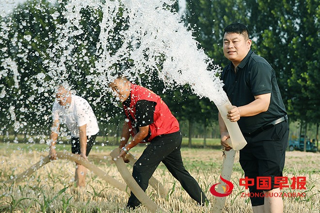 中国早报 河南讯(记者/赵玉虎 通讯员/李新义)2022年6月19日下午,河南省开封市尉氏县邢庄乡的志愿者在尹庄村在地图中查看帮助缺少劳力的农户浇灌玉米苗。针对近期持续性的高温酷热天气,降水稀少,土壤失墒旱情严重的情况,尉氏积极行动,周密组织,采取得力措施,利用农田水利基础设施,全力抗旱保苗促丰收。