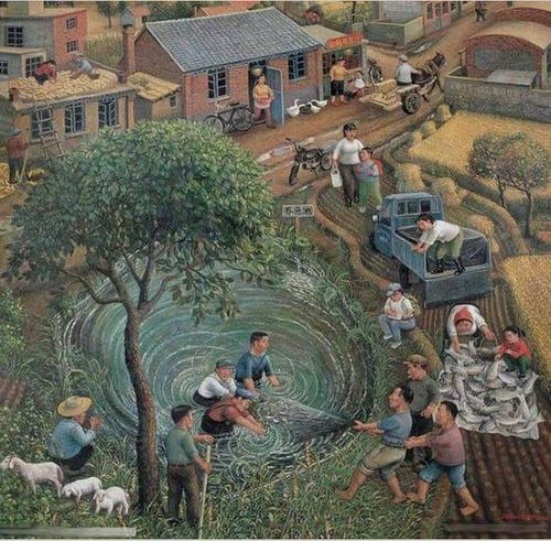 当秋天的最后一场风将城堡上空清扫得纯净无比的时候,城堡里来了“窝窝队”。清早,随着城堡里的女人们拉动的风箱声,这一杆子人就出了城堡。他们摆动着手中发亮的铁杆,城堡东边那一大片肥沃的土地在他们的手中变成了间隙很大的麻蜂窝;他们的实际工作就是不停歇地在这块沉默的土地上打眼。语言贫乏的父亲将这一杆子人叫做“窝窝队”,在父亲的心目中“窝窝队”大概比“眼眼队”文明一些。在以后的日子里,城堡里的人都遵从了父亲用窝窝队来概括这一杆子人的工作。父亲将他们打眼的铁杆在手里掂了掂,说这玩意儿至少有八斤重。铁杆像擀面杖那么粗,在三米多长的顶端焊接着半圆形的利刃。父亲用粗糙的大拇指在利刃上试了试,有些夸张地倒吸了一口气。