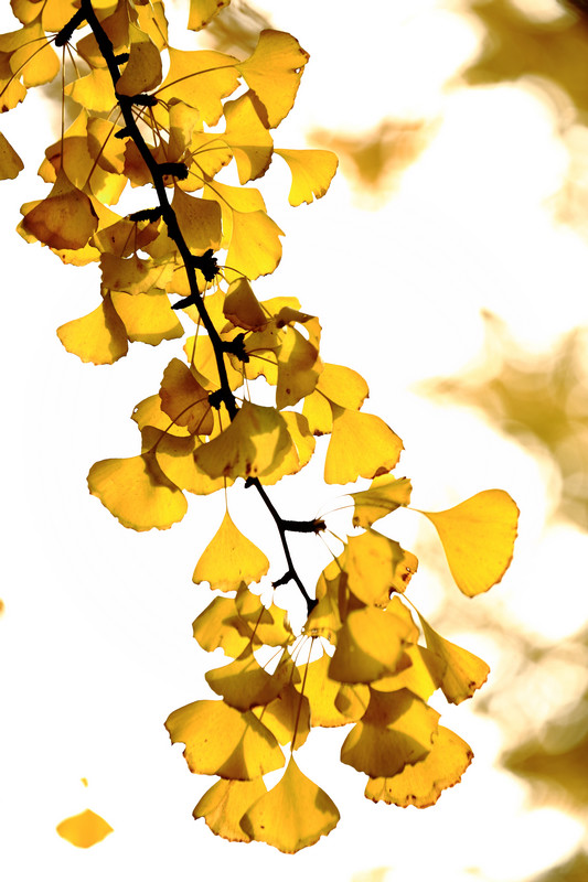 生命是一个“此在”不断绽出的过程,早在南北朝时期,思想家桓谭就写过一篇《新论形神》的文章,说“生之有长,长之有老,老之有死,若四时之代谢者也。”我想,当年他对于生命的领悟是否是面对银杏而生发的万缕遐思呢?我是的确为她动心了的。那一年,也是金风飒飒的10月,年轻而又敏感的青年诗人刘美健忽然打来电话,说今日天气晴好,去渭河南岸看银杏去。驱车东行,驰过上林桥,那一片“明黄”的秋色,就于眼前铺展开来。午后的秋风,摇曳着刷刷落地的银杏雨,仿佛万片金箔从天而落,照得人眼花缭乱。沿着林间小道,登上一座小丘,席地而坐,整个心都是暖和的。目光穿越枝枝叉叉,落在远方影影绰绰的楼群,一种“流光容易把人抛”的感慨油然掠过胸臆。是的,来到这座城市时,我刚刚走近“不惑”的边缘,一转眼,就迈上了“从心”的坎儿。而看看身边的朋友,也已过了“耳顺”之秋,去年刚刚办了退休手续。而当年我们一起为所苦心经营的媒体奔走呼号的日子,他四十岁不到。岁月啊,就如这眼前的渭水,“不舍昼夜”。我们,都面临一个现实的话题——如何“优雅”地老去。秋风吹我,冥冥中似乎有一个声音在耳边提示——就像银杏,即便谢幕,也要把一抹金色辉煌留给青天,留给大地。我久眠的诗性灵感在一瞬间被唤醒了。打开手机,就坐在小丘上,一口气将心中的波澜倾斜给小小的写字屏: