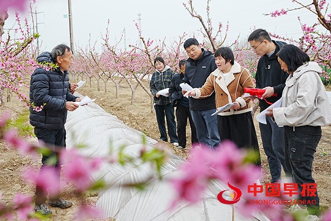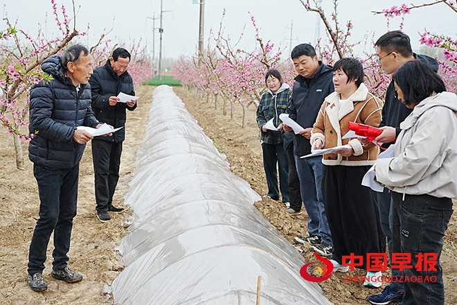 中国早报 河南讯(特约记者 李新义)3月27日下午,在河南省开封市尉氏县邢庄乡屈楼村的辣椒育苗田里,来自河南省大宗蔬菜产业技术体系露地蔬菜栽培岗位的技术人员为村民讲解应对低温、大风天气朝天椒幼苗管理的知识。