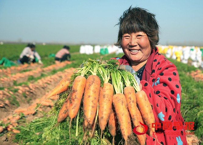 中国早报 河南讯(特约记者 李新义)12月7日,冬日暖阳洒满田间,河南省开封市尉氏县张市镇张市村特色种植合作社的员工们正忙碌在红萝卜种植园里。大家分工协作、抢抓农时,采收、分拣、打包一气呵成,新鲜的红萝卜将源源不断发往外地市场。