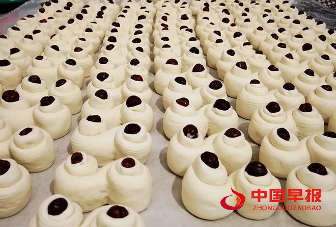献食蒸好了,就该着蒸走亲访友所需的大小枣花馍了。母亲都提前计算好了送长辈的大馍要蒸多少个,送平辈晚辈的小馍多少个,待客的枣花馍要蒸多少个。大馍一把半的面剂子,小馍一把的面剂子。蒸馍就期盼着能bia(馍从中间裂开一道缝),bia得越开越好。母亲比较迷信,在提笼盖那一刹那总要念叨:“灶锅呀爷爷姓张,保我馍馍白(pia)胖。”好像记忆中母亲蒸的馍就没有不好的时候,小时候以为真有灶王爷保佑。其实是酵子做得好,有了好的酵子,馍就不怕做不好了。母亲蒸馍的时候远远地就能闻到那独有的香味,让人垂涎欲滴。