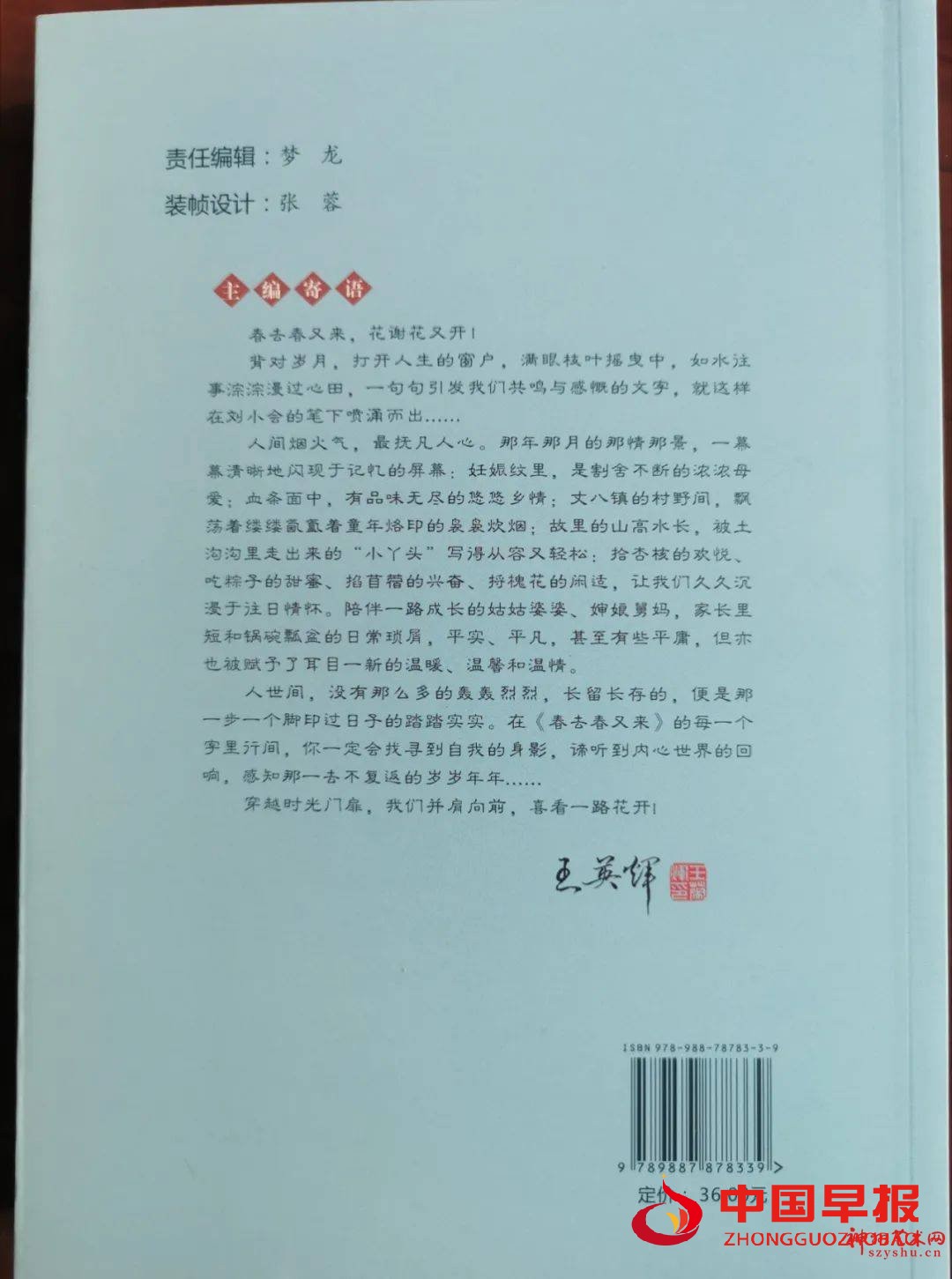 希望我的这本即将付梓的散文集《春去春又来》,带给读者的不仅仅是回忆和缅怀,我是想带领读者走进一座温馨的家园。那里虽然没有花团锦簇,但却山花烂漫。那里平凡的那情那景,凝结了我对故乡的眷恋,使我能常常带着灵魂回到精神的故园;那里朴素的人和事、情和景汇聚了我在被爱的氛围中温暖如春的成长岁月,是那些亲人们送我上路,勇敢奔赴人生一个接一个的关口,去延续我和他们的梦想;那里非常时期的那年那月,记录了疫情之下我们一家聚少离多中久违的团聚和同心协力备战高考的点滴;那里不囿于亲情的另一群人和他们的崇高信仰,让我对接下来更美好的生活满怀期待。