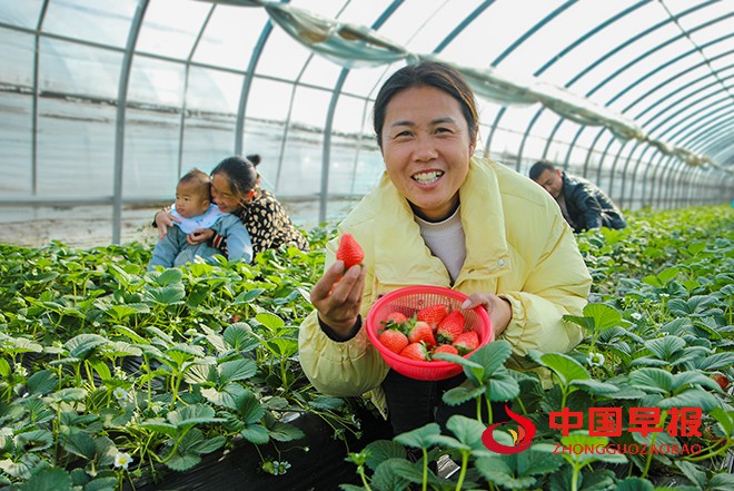 中国早报河南讯(记者 赵玉虎 通讯员 李新义)12月6日,河南省开封市尉氏县草莓采摘园内绿意盎然,一颗颗等待上市的反季草莓,果肉饱满、色泽诱人,一眼望去红绿相间,让人垂涎欲摘,老百姓正在采摘品尝反季优质草莓,喜悦的表情不自觉的浮现在他的脸上。