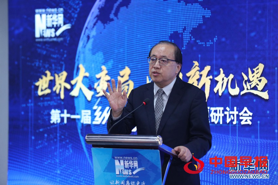 1月8日,新华网第十一届“纵论天下”国际问题研讨会在北京成功举行。图为宁夏大学中国阿拉伯国家研究院院长李绍先在进行主旨演讲。新华网 郭小天 摄