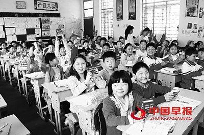 同学们领到《新华字典》时的喜悦场面。图片由商务印书馆提供