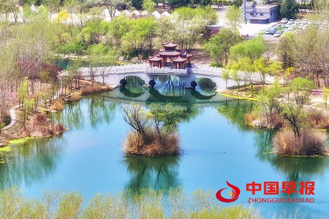 中国早报 山西讯(特约记者 田红萍)4月10日,山西省临汾市滨河公园宛如一幅诗意盎然的画卷徐徐展开。垂柳依依,万千嫩绿的丝绦如飞瀑般垂下,在微风中轻盈摇曳,与汾河那澄澈的碧波相互映衬,波光粼粼间满是春日的灵动。桃花嫣红,连翘金黄,它们争奇斗艳,将公园装点得五彩斑斓。