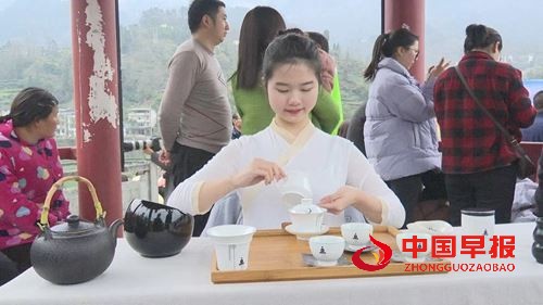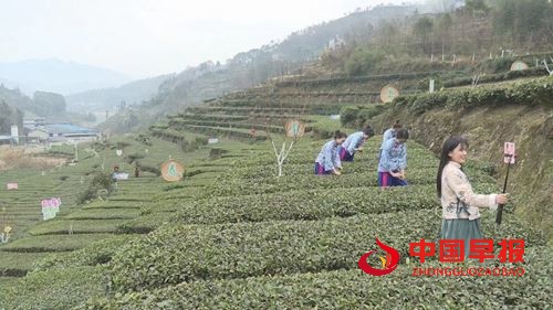 诗作说明:南宋著名诗人陆游途经秭归,写过《暮次秭归》,里面有“朝披南陵云,夕揖建平树”的诗句。据说当时陆游在茅坪镇兰陵溪一带登岸,在看见了兰陵溪、中坝子茶农采茶的场景,品尝了刚刚炒制的春茶之后,留下了“携篮苔径远,落爪雪芽长。细啜襟灵爽,微吟齿颊香”的千古名句。为了纪念陆游到访,秭归县在茅坪镇中坝子村精心打造了早茶基地,取名“陆游茶苑”,还建了美轮美奂的亭子和小桥。近年来,茅坪镇中坝子村一家集茶叶种植、加工、包装、销售为一体的市场主体——秭归县承美悦茶叶合作社网罗中坝子、兰陵溪115户社员大力发展早茶,并注册了“溪邻春”茶叶商标。因“溪邻春”茶叶冲泡之后,外形秀丽、汤色澄澈、滋味醇厚、鲜爽回甘备受消费者青睐,名气越来越大,名声越来越响,线上线下销售风生水起。“溪邻春”茶叶已成为当地助力乡村振兴的支柱产业。