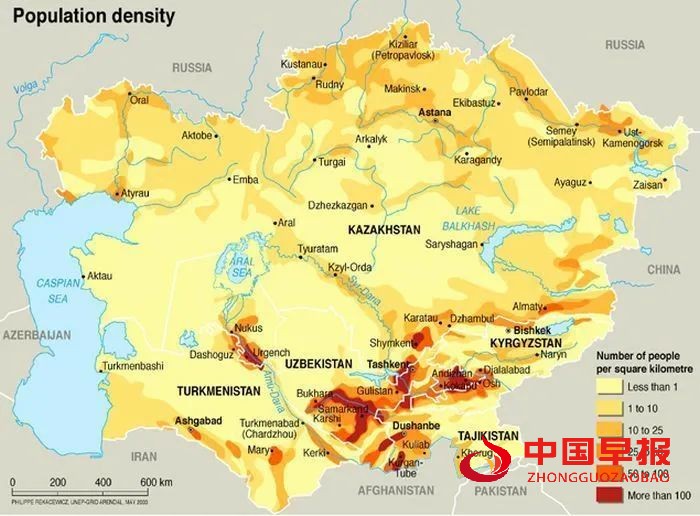因此,乌兹的人口数量和人口密度远超其他4个斯坦,位于中亚第一。