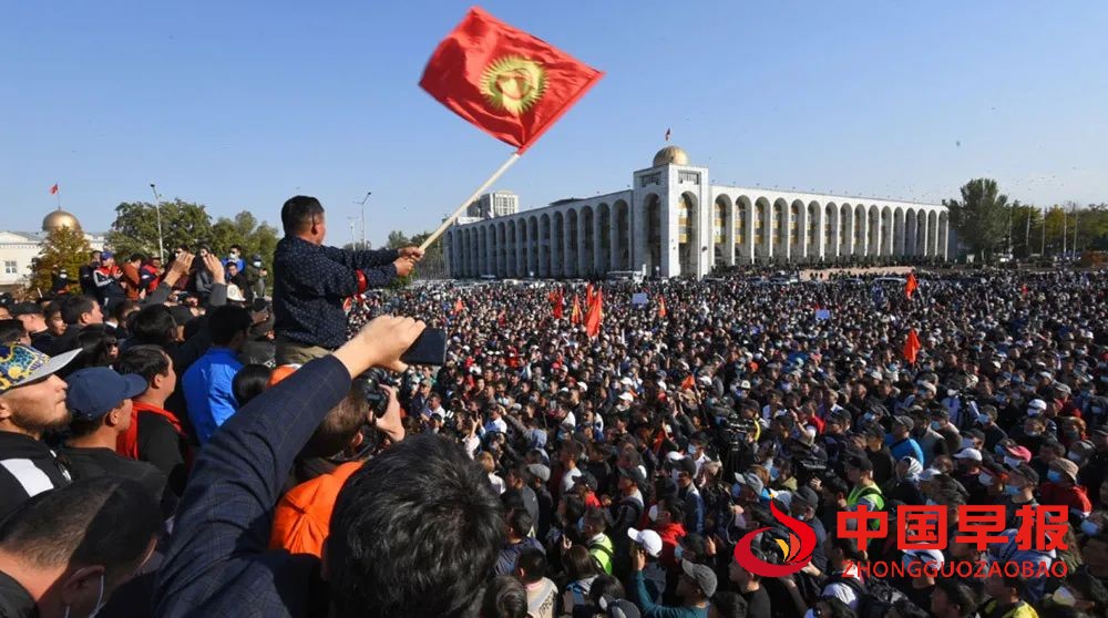 由于议会选举结果激起多个党派普遍不满,10月5日晚上,集结在首都比什凯克中心的抗议者在冲破安全部队的阻挡后,开始冲击国会和总统府所在地、吉尔吉斯斯坦“白宫”,并成功攻进了楼内。