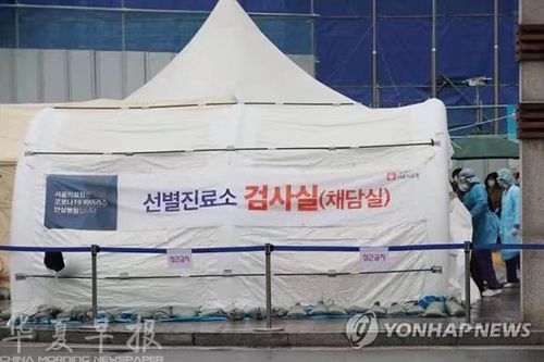 首尔的综合医院门口设立了新冠病毒肺炎检查的专用场所。