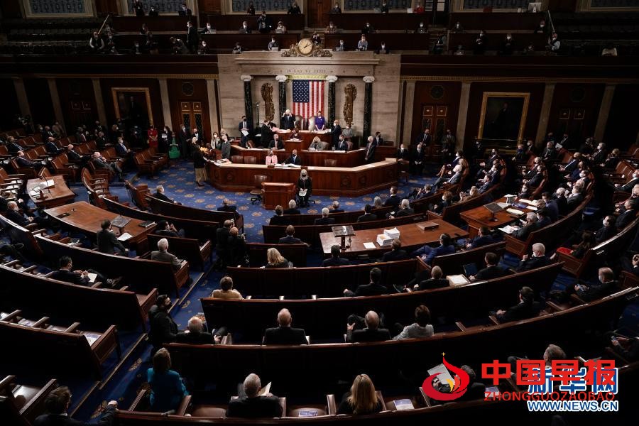 美国东部时间1月7日凌晨,历时近15个小时的美国国会联席会议在经历示威者暴力冲击国会大厦的波折后结束。会议确认拜登当选下一任美国总统。图为1月6日在国会大厦拍摄的国会联席会议现场。(新华社发,Pool图片,斯科特·艾普尔怀特摄)