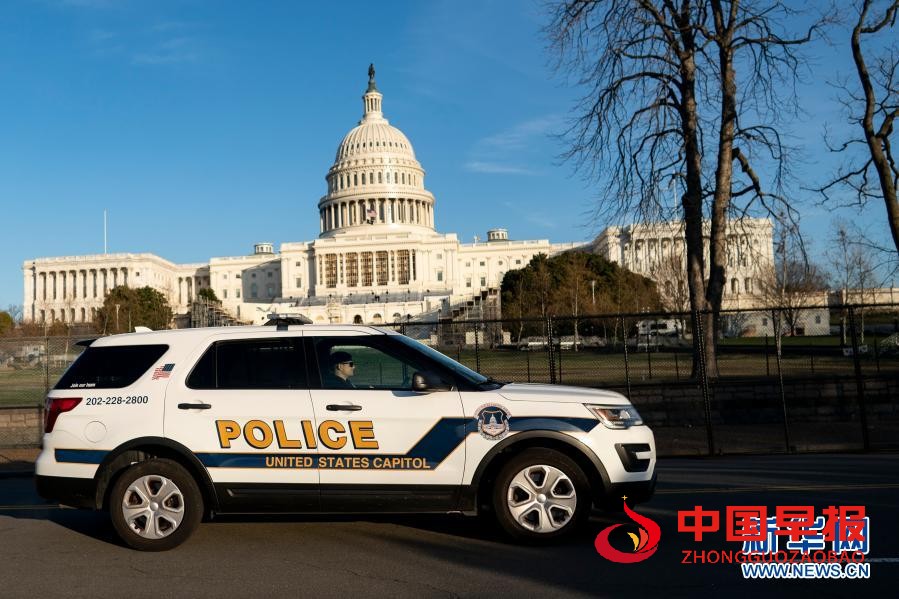 1月7日,在美国华盛顿,一辆警车从国会大厦前驶过。(新华社记者刘杰摄)