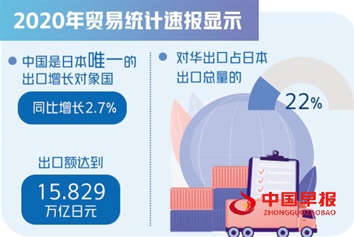 2020年中国成为日本唯一出口增长对象国