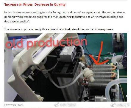 【印媒恶意抹黑中国制氧机质量有问题】近段时间,印度疫情肆虐,包括中国在内许多国家都为其提供了物资。然而,《今日印度》14日发布一篇“独家报道”,指责中国企业不仅提高了向印度出售的制氧机等设备的价格,而且还以“损害相关设备质量和使用寿命”为代价更改其规格和组件,声称“中国(公司)在生死攸关的问题上以牺牲印度人民的生命来谋利”。然而,该报道大量引用“匿名印度商人”的话。也没有具体说明哪家中国企业出口印度的制氧机“不合标准”。(环球网)
