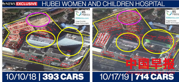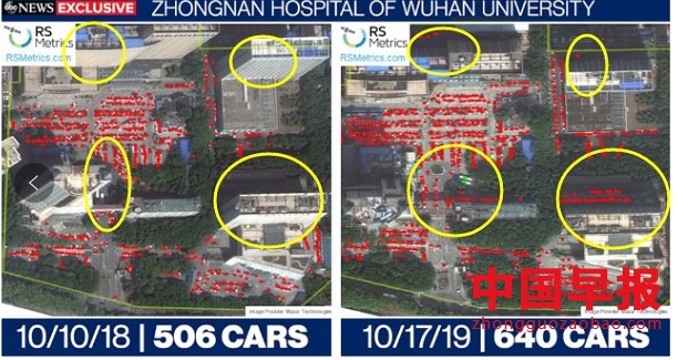 乍一看特朗普的截图:“卫星图像表明”,让人摸不到头脑。卫星图像是如何捕捉新病毒的?再看美国有线电视新闻网(CNN)报道:研究发现,2019年夏末秋初,5家武汉医院的停车场汽车数量比2018年大幅上涨。该研究使用了来自2018年10月的卫星图像,研究者数了数,武汉一家医院停车场当时有171辆汽车。一年后,在同样的停车场,却有285辆汽车,增长了67%。同时在中国互联网搜索引擎百度上,“腹泻”和“咳嗽”这两个关键词的搜索量上升。