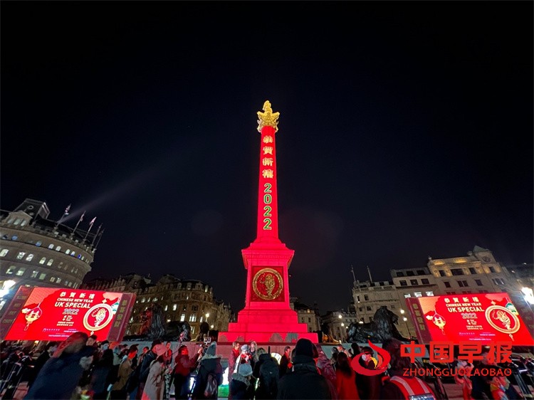 伦敦特拉法加广场除夕夜亮起“中国红”