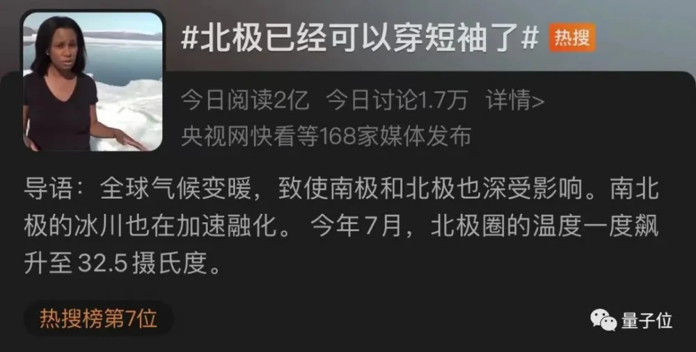 北极如此极端的高温天气,一度令全球紧张,关于#北极已经可以穿短袖#的相关话题,频频冲上热搜。